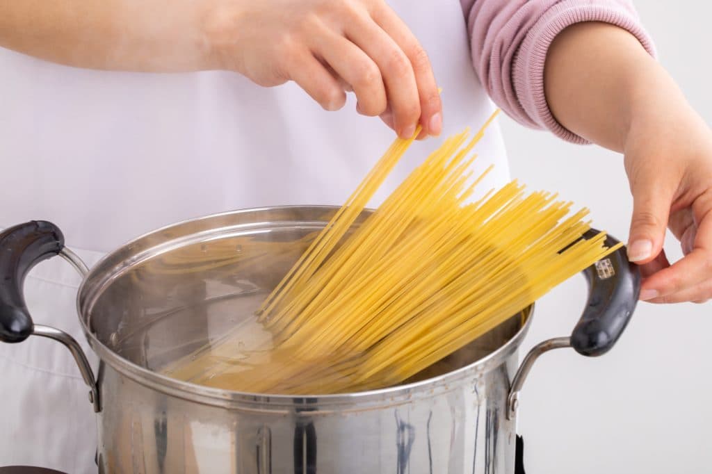 四つ目は、ゆで時間の調整です。乾燥パスタの場合、アルデンテ(少し芯が残った状態)に仕上げるために、少し短めにゆでることで、「もちもち」とした食感を残せます。