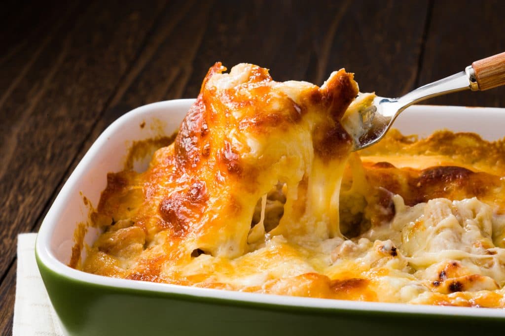 食材には、ホワイトソース(ベシャメルソース)や、チーズをかけてオーブンで焼き上げ、表面をこんがりと焦がすのが特徴的です。