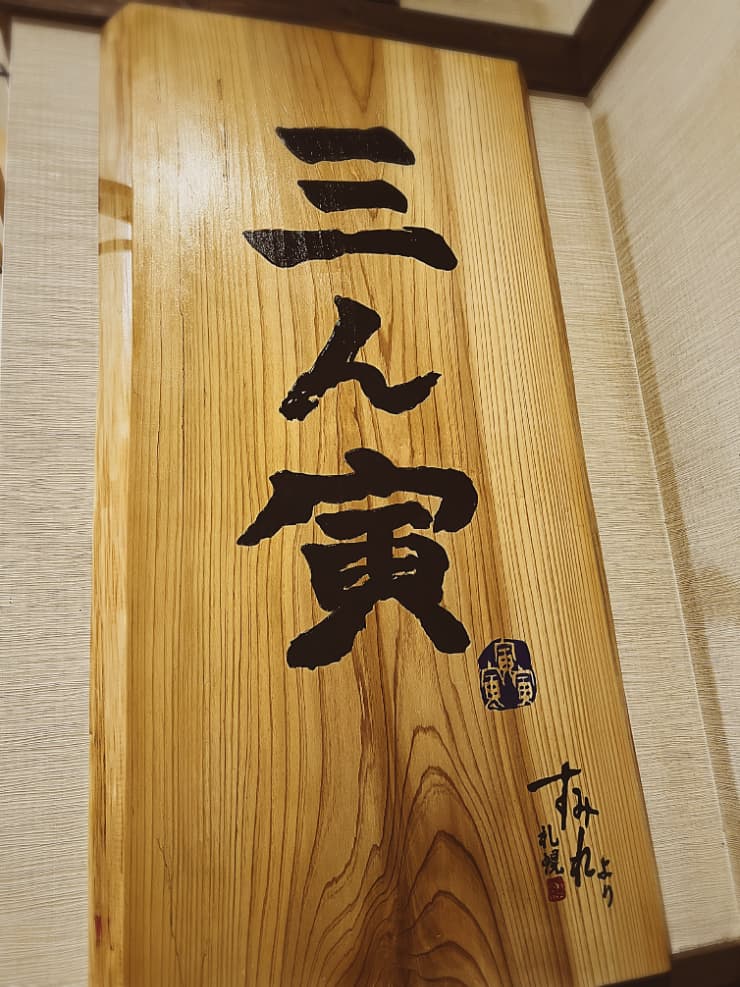 元すみれ本店店長・京都店店長・ラーメン博物館 駅 店長を勤めた後、2019年に「三ん寅」を開業。「すみれ」からの暖簾分けとしては「彩未、大島、郷、八乃木」に続いて5店舗目。店名は『寅年の三月生まれ、「ん」は画数から』だそうです。