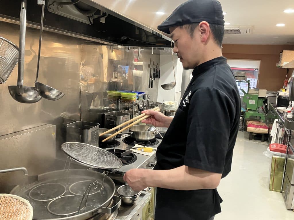 4年間サラリーマンをしましたが、ラーメン店でアルバイトをしていた時の楽しさや仕事の充実感が忘れられなくて、飲食業に戻りました。まずは東京・護国寺にあった「ちゃぶ屋」で現「鳴龍」店主である斎藤さんの元で修業。ラーメン以外の料理の勉強のために居酒屋で1年働いた後、学生時代のアルバイト先「麺の坊 砦」に社員として戻り、5年間修業をし店長やマネージャーを経験。