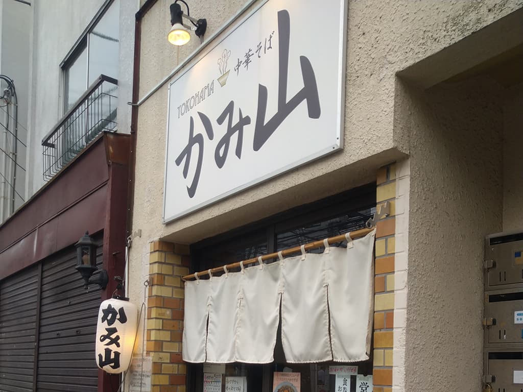 老舗ラーメン店に就職し修業。本店で1年、そのお店が出店されていた横浜で7年間勤務をした後、うどんのフランチャイズ店で社員として4年働き、2017年に「YOKOHAMA中華そば かみ山」を開業。屋号の「YOKOHAMA」は特に横浜とは所縁はないものの、メニューに神奈川のご当地ラーメン「サンマーメン」があることや、横浜=中華・中華街のイメージで伝わりやすいことが由来。店名内の「中華そば」も中華そばを提供する予定はないが、単純に麺類もやっていますの意を込めて。』だそうです。