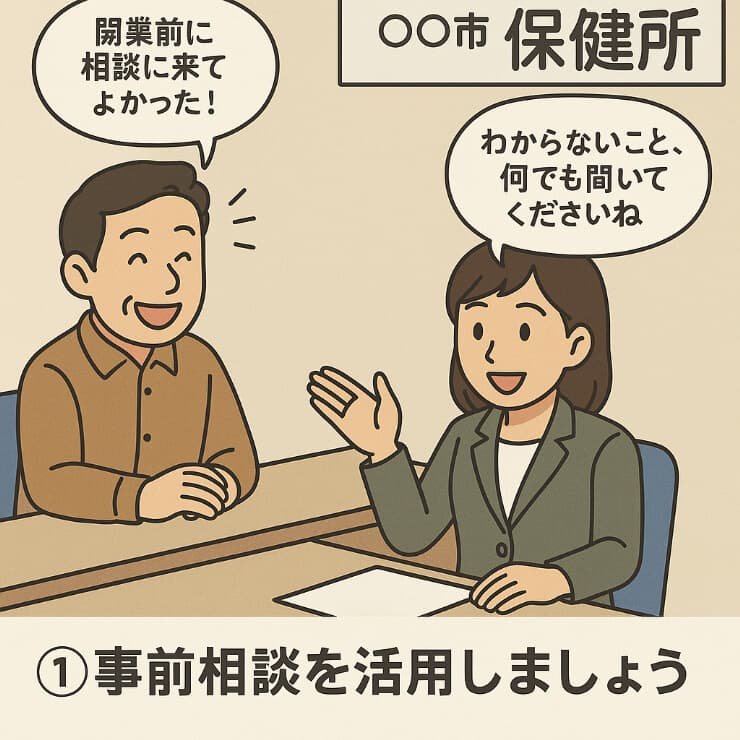 事前相談を通して、保健所の職員との信頼関係を築くことも大切なポイントです。