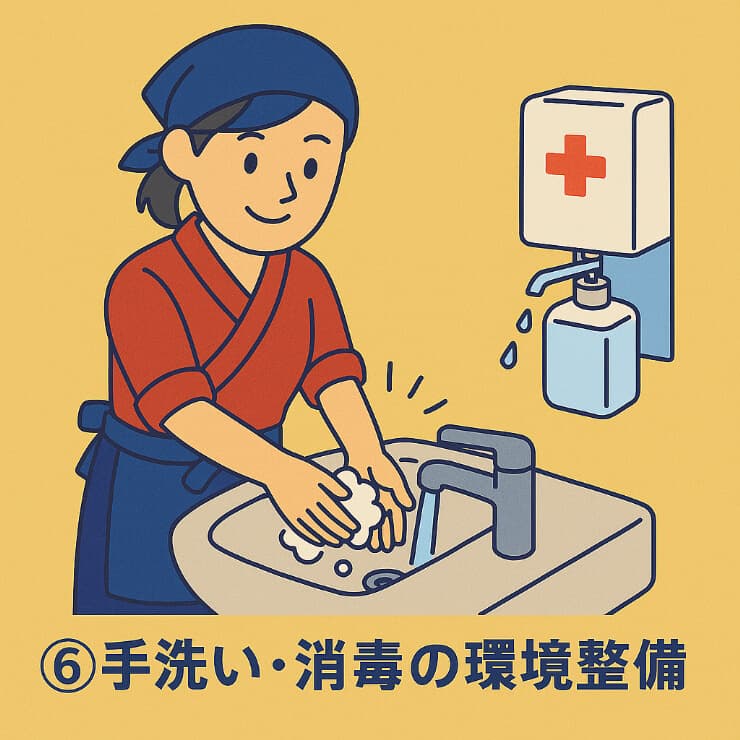 ・石けん(液体タイプ)・手拭き用ペーパータオル設置が必須