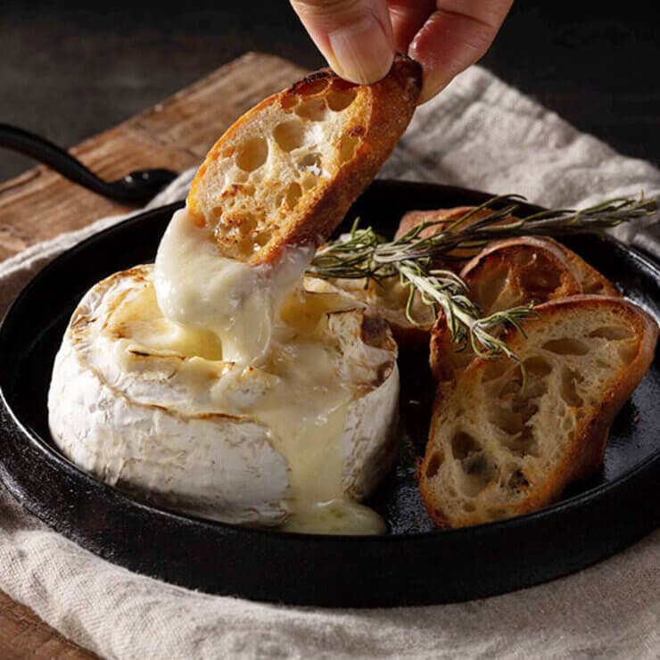 アルミホイルに包んで加熱し、上の部分を切れば、簡単チーズフォンデュの完成。