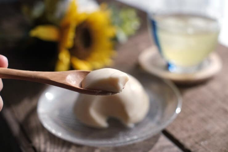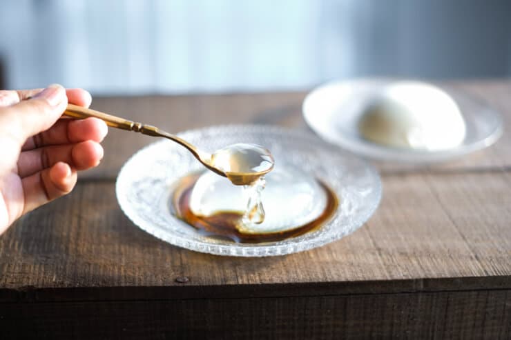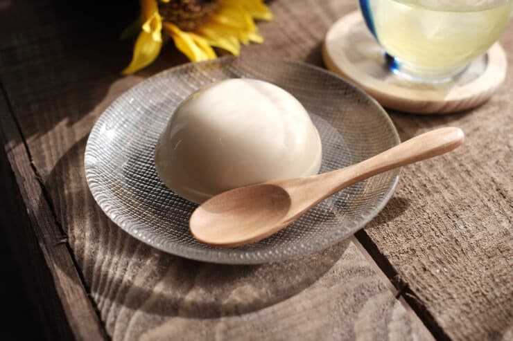 いただいてみると、まさにくず餅とプリンの中間のような感覚です。プリンらしいミルク感や卵の風味を感じますが、食感はプルプルほろりとほどけるようなくず餅の食感。後味はさっぱりしています。