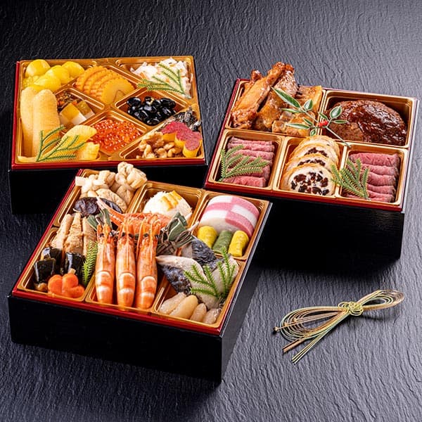 伝統を重んじながらも、ハンバーグやローストビーフなどを織り交ぜた和洋折衷おせちです。お正月に相応しい彩り豊かなお料理の数々を取り揃えました。
