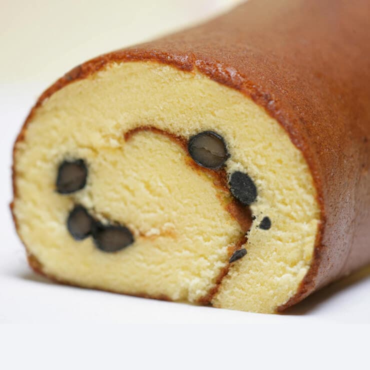 ポイントは、カステラ生地に白餡が練り込まれているところ!