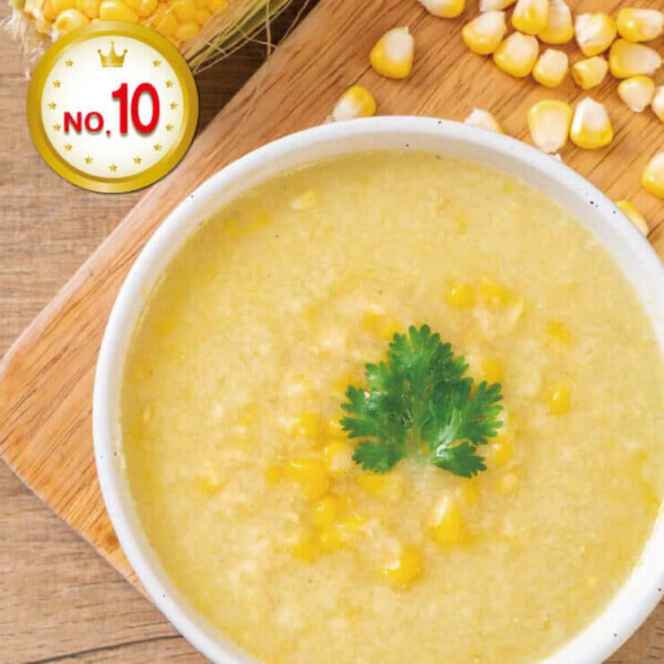 コーンスープの300%の粒コーンが入っています。(当社比)