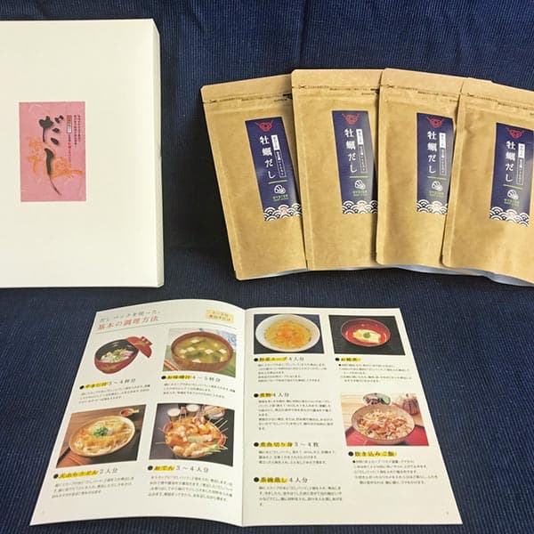 広島県産牡蠣の旨味を特殊製法でむき身まるごと使用し、いりこを基調に、鰹・うるめ・鯖・昆布・椎茸を合わせた料理に合わせやすい出汁です。海鮮好きの方にはお勧めの出汁がとれます。