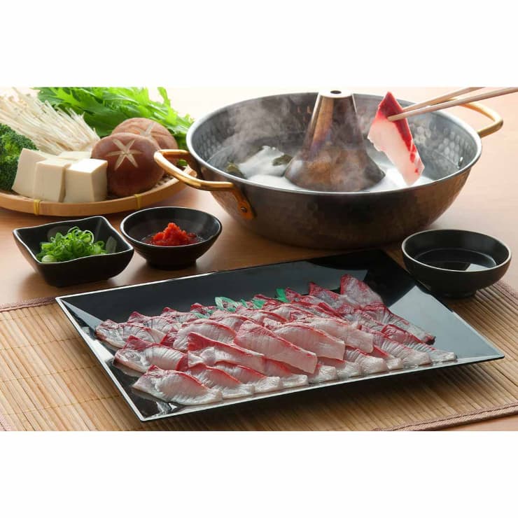 脂がのっている冬の時期だけしか食べることのできないかぼすブリのしゃぶしゃぶセットです。
