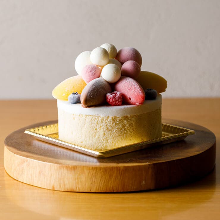 チーズタルトの上に、サワーチェリーやフランボワーズ、あまおうなど7~8種類のフルーツをたっぷり盛り合わせた贅沢なタルト。