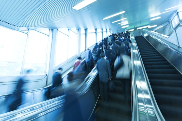 エスカレーターの片側空けを防止する新型エスカレーターが開発されました。このエスカレーターは、乗り込み口やステップにLED照明を設置し、利用者が2列で立つことを促します。また、ステップの移動スピードに合わせた照明で、安全な利用を促進しています。