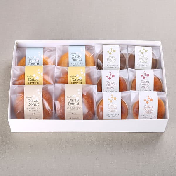 揚げていないためとってもヘルシーな大豆ドーナツは、素材を味わうプレーン、後味爽やかなレモン味と香り豊かな紅茶味の3種入りです。