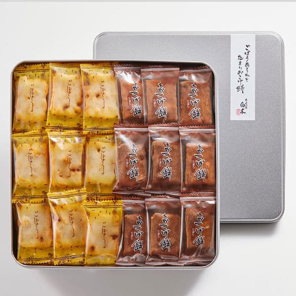 あられの匠「白木」の人気商品「ごぼうあられ」と「おこげ餅」のセットです。