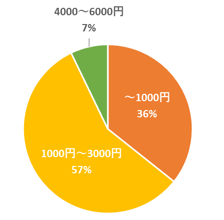 結果は、「~1000円」が36%、「1000円~3000円」が57%、「4000~6000円」が7%となりました。客単価は1000円~3000円の価格帯のお店が多いようです。