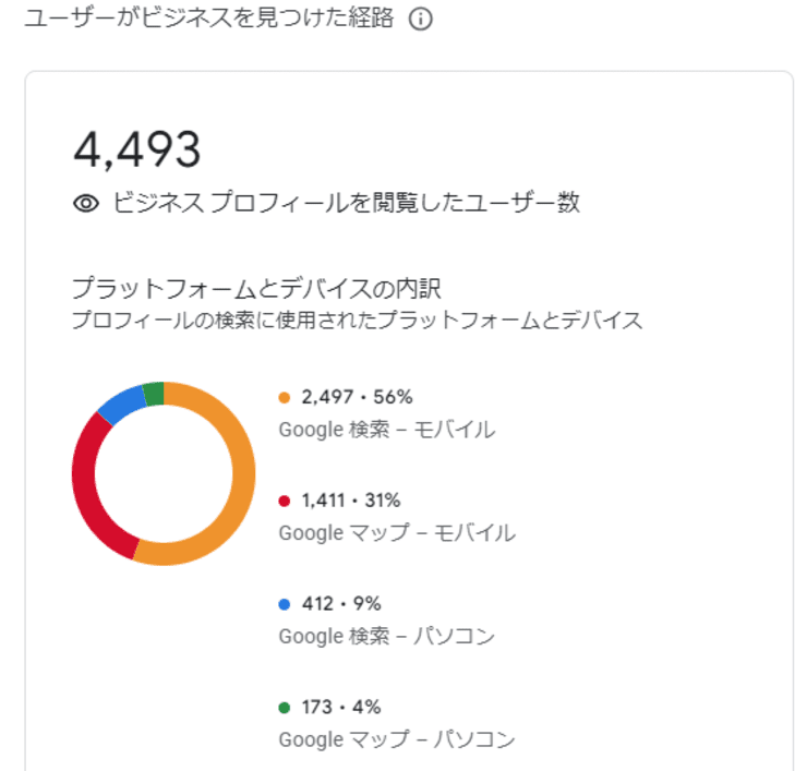 こちらが実際にGoogleビジネスプロフィールにお店を登録すると見ることができる画面です。
