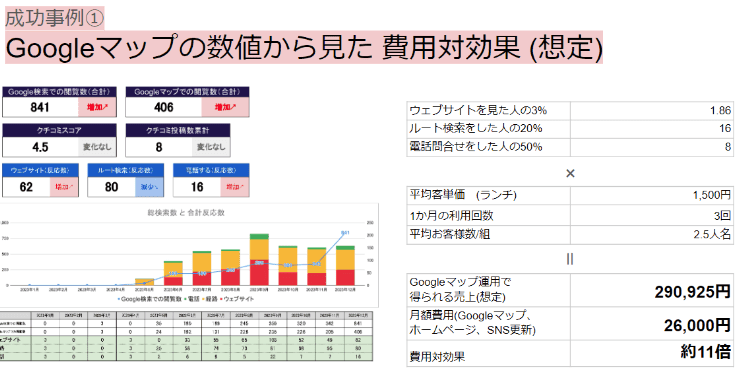 和膳処むすび様のGoogleビジネスプロフィールの数値を基に、ご利用いただいているサービスの費用対効果も特別にご紹介します。