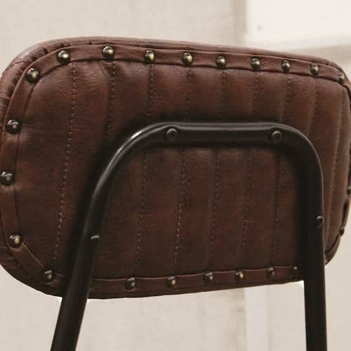 座面と背もたれに採用されたブラウンのカラーリングは、温かみを感じさせ、どんなインテリアにもマッチします。さらに、背裏には高級感漂う鋲が打ち込まれ、スタイリッシュなデザインに上質なアクセントを加えています。