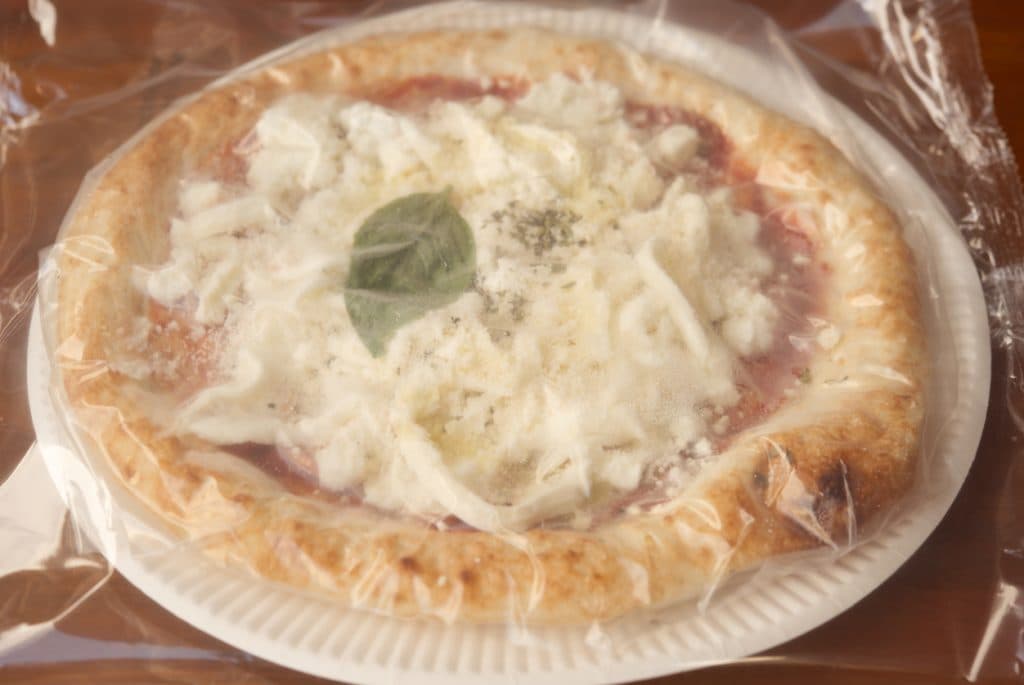 冷凍ピザを焼いて、マルゲリータとして提供することができます。