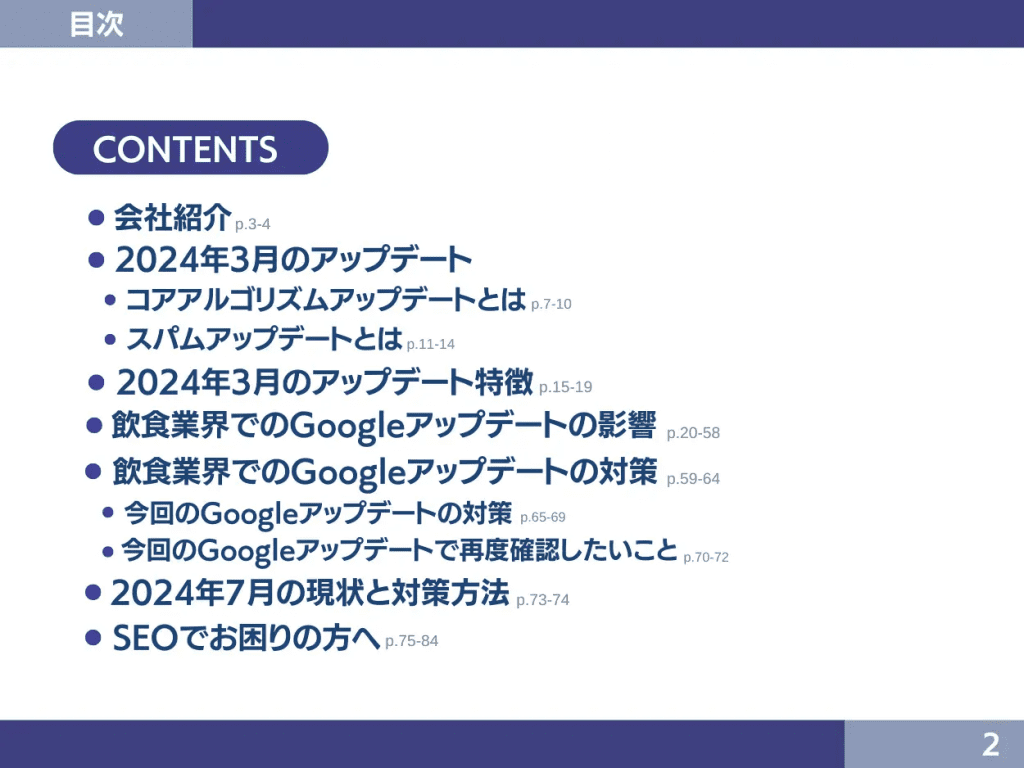 「飲食業界でのGoogleアップデートの影響」では、具体的な事例をもとにアップデートの影響を詳細に解説しています。アップデートの特徴や飲食業界でのGoogleアップデートの対策などのSEO情報にも注目です。
