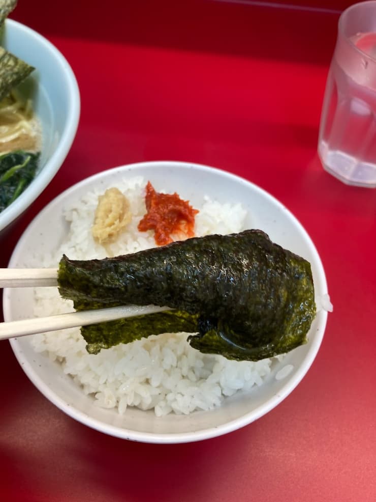 でも私的家系の一番の楽しみは『スープを汁を纏った海苔で巻くライス』です。ん~っ、たまらん!!