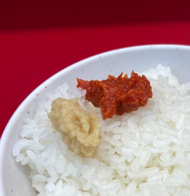 お決まりの豆板醤、そして今日はショウガをライスにセッティング完了。あとはラーメンを待つのみ。