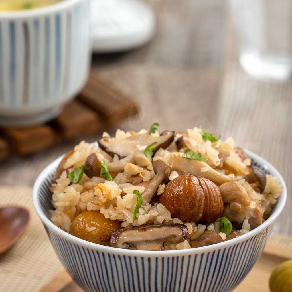 さまざまな種類のきのこを使った炊き込みご飯は、秋の味覚を満喫できます。