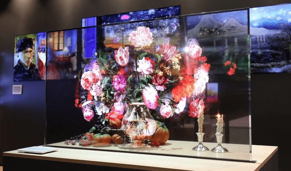 高い透過率を持ち、液晶層、バックライトが不要なため非常に薄い構造で、既存の液晶透過ディスプレイよりも高い透過性を表現することができます。
