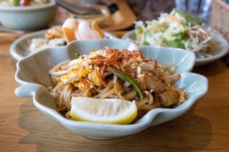 タイ風焼きそば(パッタイ)は、エスニック料理の中でも人気が高く、多くの店舗で提供されています。