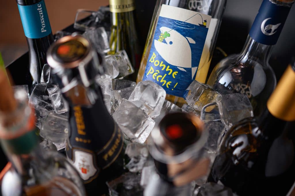 ワインはソムリエである代表が選んだ世界各国のワインを赤白泡とまんべんなく、自然派のものも含め常時6~70種類ほどご用意しております。