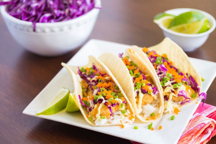 グリルチキンや魚を使った、低カロリーなタコス。