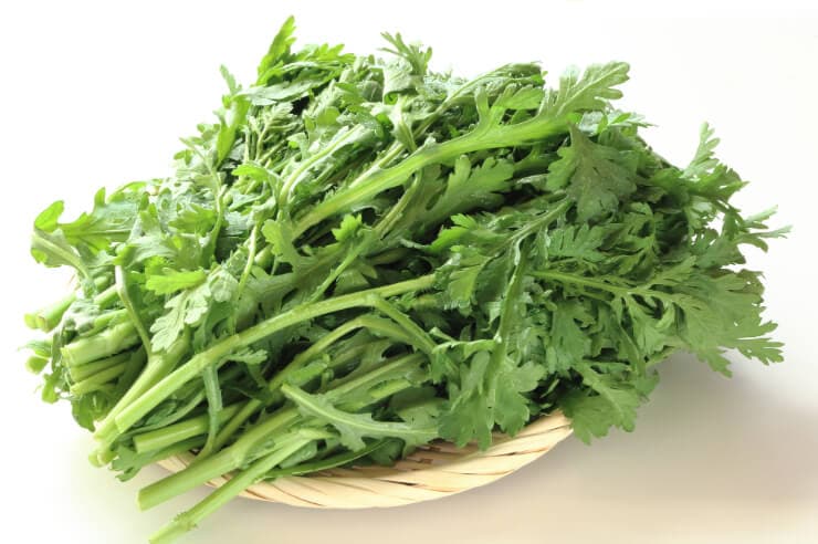 - 春菊の葉をちぎり、一口大にする。