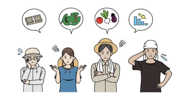 農業従事者の高齢化が進み、若い世代の農業離れや後継者不足が深刻化しています。これにより、生産体制の維持が難しくなり、生産量の減少や生産コストの増加につながっています。