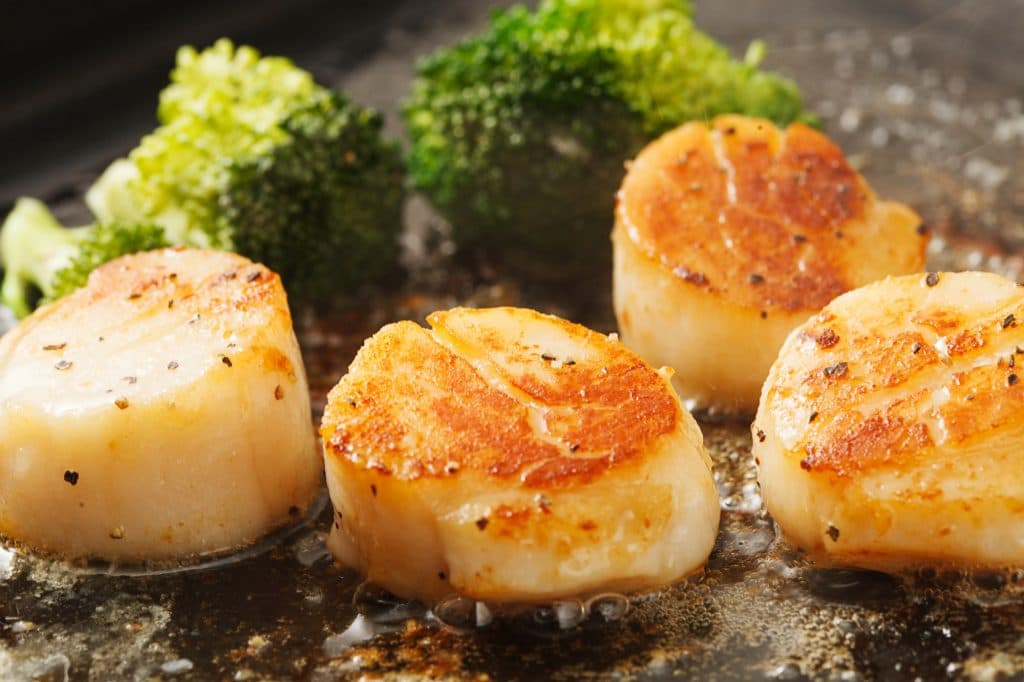 - 主菜:ホタテとブロッコリーのガーリックバターソテー