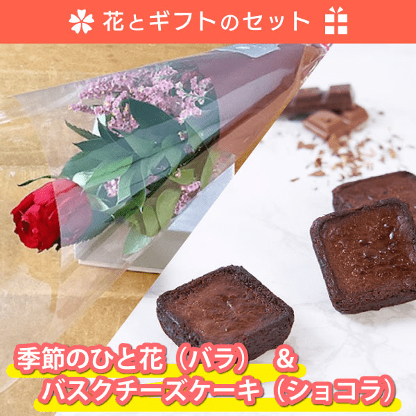 4.【花とギフトのセット】花とバスクチーズケーキ