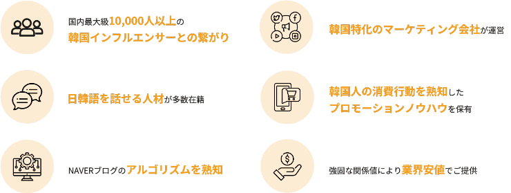 韓国のトレンドを発信するインフルエンサーと直接連携し、ターゲット層へ一気にリーチ。SNS上での話題拡散により、認知度を効果的に高めます。