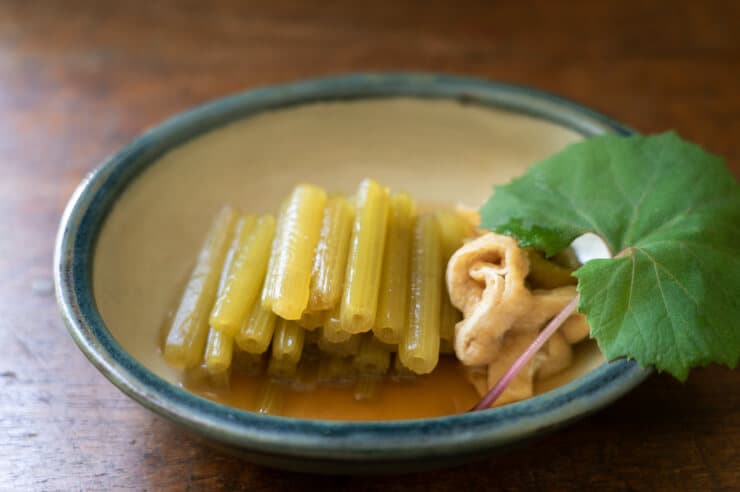• ふきが柔らかく、味が染みたら火を止め、少し冷ましてから器に盛りつけて完成!