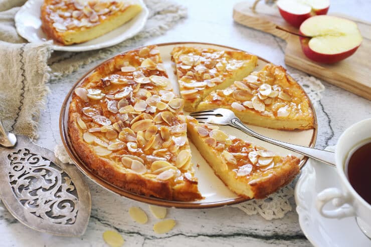 4.2のタルト台にアーモンドクリームをのせてまんべんなく広げ、アーモンドスライスをちらす。180℃に予熱したオーブンで30分焼く。