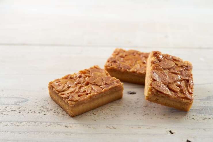 7.4で焼いたクッキー生地に6のキャラメルを広げ、180℃に予熱したオーブンで20〜25分焼く。