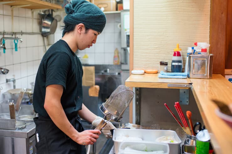ラーメン屋では、動きやすく、熱や油に強いユニフォームが適しています。
