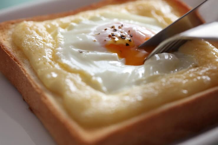 ゆで卵をフォークでつぶし、マヨネーズ、塩・こしょうを混ぜます。食パンにのせてトースターで焼いて、完成です。