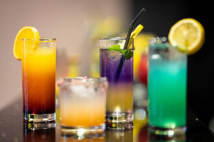 シロップやリキュールを少量加えることで、色の変化を楽しめます。