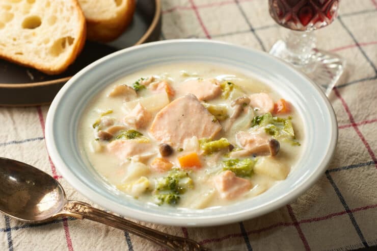 冷涼な気候のフィンランドでは、あたたかいスープ料理が人気です。その中でも「ロヒケイット(サーモンスープ)」は、サーモン、ジャガイモ、ニンジン、ディルなどが入ったクリーミーなスープで、体の芯から温まります。