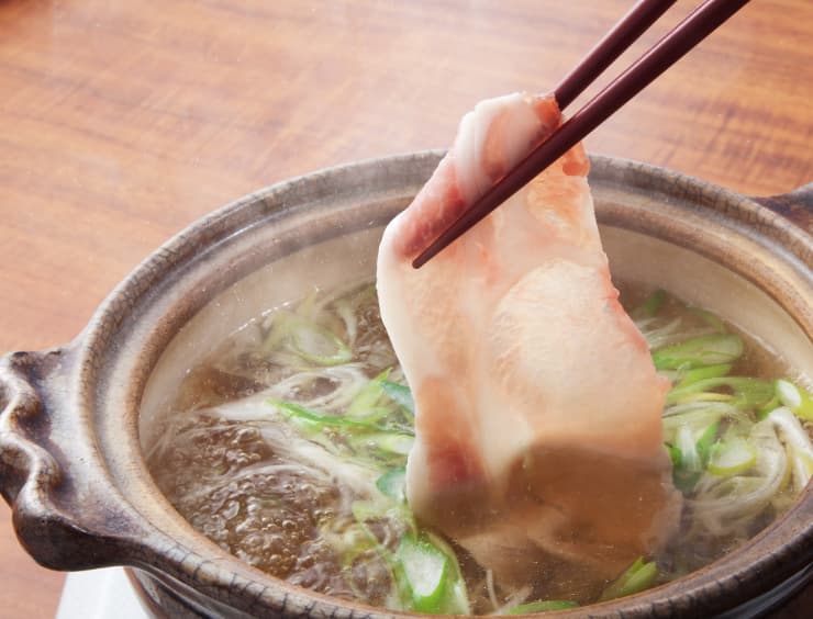 しゃぶしゃぶとは、薄くスライスしたお肉を熱いだしに「サッ」とくぐらせ、好みのタレにつけて楽しむ日本の代表的な鍋料理です。