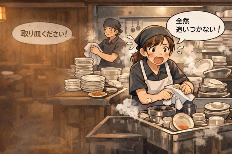 食器が不足すると、洗い場が追いつかず提供が遅れ、スタッフの動きも乱れやすくなります。