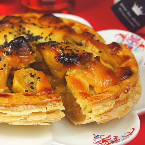 パイ生地の最上部に堂々と鎮座している大学芋。
