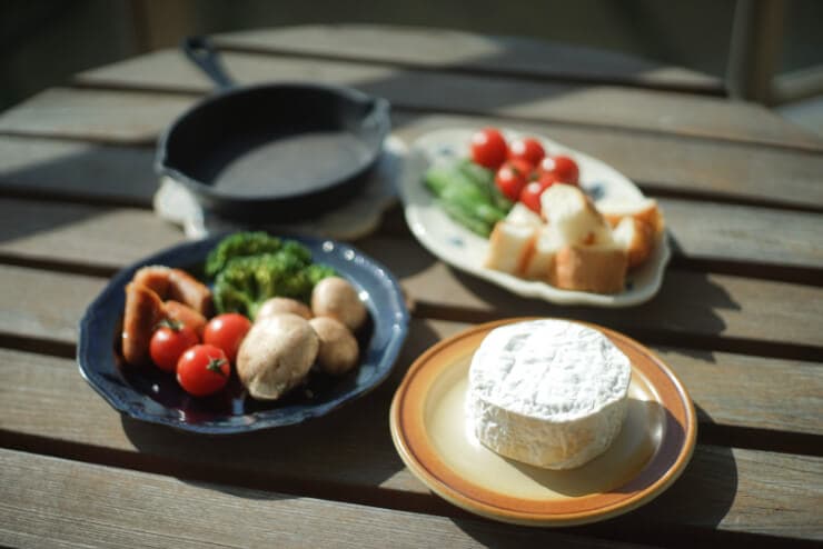 1.カマンベールチーズとお好みの具材を準備!今回はバゲット・ミニトマト・ウインナー・ブロッコリーなどを用意してみました!