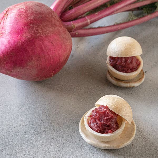 餡の味はオリーブの葉、ビーツ、カカオ、あんこの4種類です。