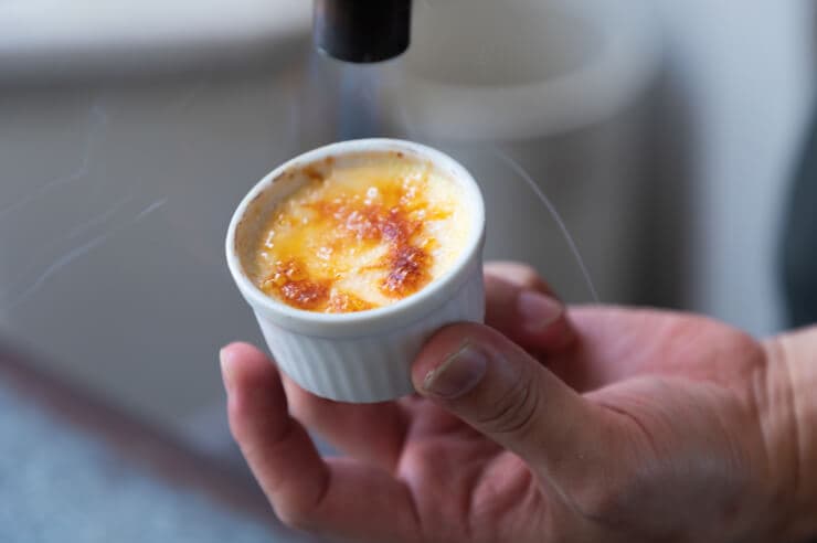 卵と砂糖、牛乳や生クリームを混ぜ合わせ、オーブンで湯煎焼きにしたのち、上面にのせた砂糖を焦がしてカラメルをつくります。焦がしたカラメルの香ばしさとパリパリした食感、下部のやわらかくしっとりした食感のコントラストが楽しいスイーツです。