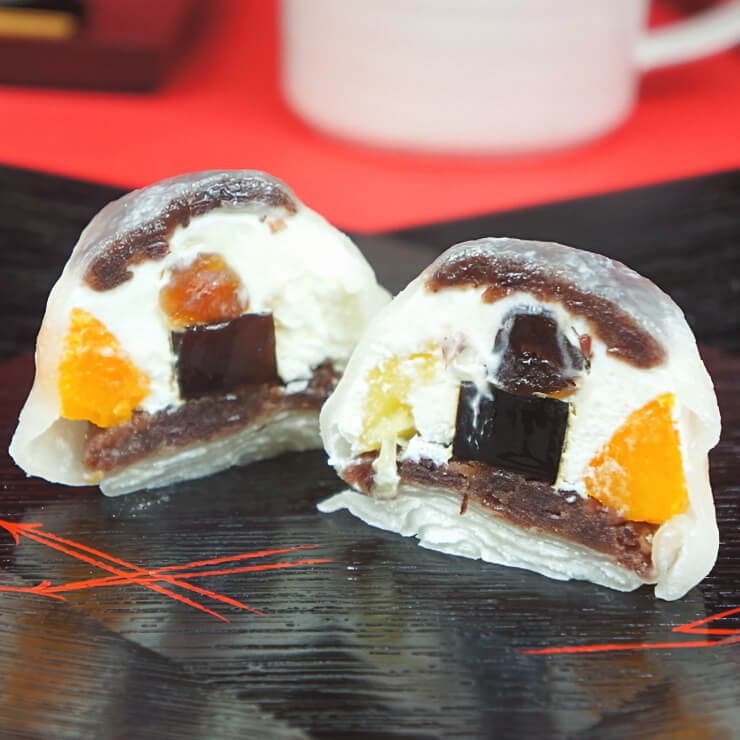 あんみつの中身をそのまま大福に入れてしまった贅沢な一品。